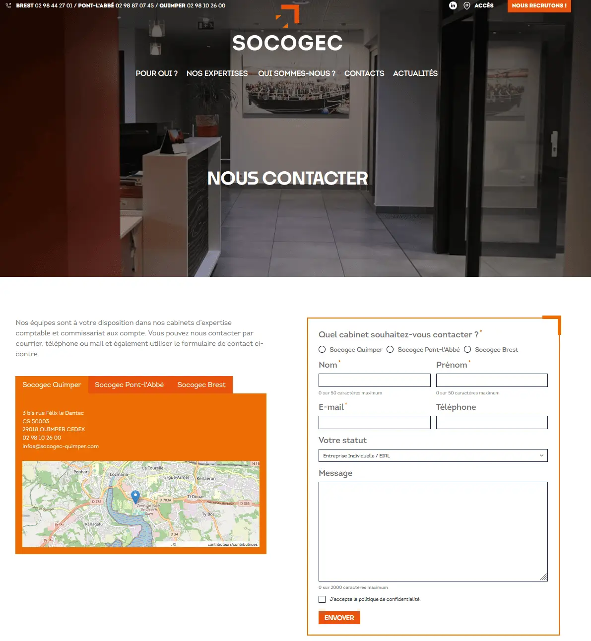 Groupe d’expertise comptable en Finistère. Le site présente la Socogec et mets l’accent sur ces nombreuses compétences ainsi que sur le recrutement.